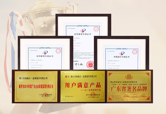 通過ISO9001認(rèn)證,國家建筑材料測試中心和中國有色金屬華南產(chǎn)品質(zhì)量監(jiān)督檢驗中心合格檢測,符合美國建筑制造商協(xié)會AAMA2605-98涂層標(biāo)準(zhǔn),被國家建設(shè)部認(rèn)定為建筑鋁合金外墻板、鋁合金天花板定點生產(chǎn)企業(yè)。